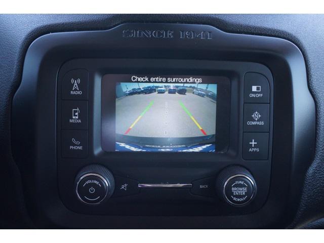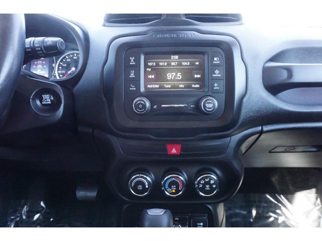 Clean CARFAX. Black 2017 Jeep Renegade Latitude FWD 9-Speed 948TE Automatic 2.4L I4 MultiAirHomer Skelton is committed to meeting your automotive needs with speed flexibility and friendly customer service. Recent Arrival! Odometer is 27368 miles below market average! 22/30 City/Highway MPGPassive Entry Remote Start Package (Passive Entry/Keyless Go) Quick Order Package 27J AM/FM radio: SiriusXM Fully automatic headlights ParkView Rear Back-Up Camera Remote keyless entry 16"" x 6.5"" Aluminum Wheels 17"" x 7.0"" Aluminum Wheels 3.734 Axle Ratio 4.438 Axle Ratio 4-Wheel Disc Brakes 6 Speakers ABS brakes Air Conditioning Alloy wheels Anti-whiplash front head restraints Brake assist Cloth Low-Back Bucket Seats Compass Delay-off headlights Driver door bin Driver vanity mirror Dual front impact airbags Dual front side impact airbags Electronic Stability Control Four wheel independent suspension Front anti-roll bar Front Bucket Seats Front Center Armrest Front fog lights Front reading lights Heated door mirrors Illuminated entry Knee airbag Leather steering wheel Low tire pressure warning Manufacturer's Statement of Origin Normal Duty Suspension Occupant sensing airbag Outside temperature display Overhead airbag Overhead console Panic alarm Passenger door bin Passenger vanity mirror Power door mirrors Power steering Power windows Radio data system Radio: Uconnect 3 w/5"" Display Rear anti-roll bar Rear window defroster Rear window wiper Roof rack: rails only Speed control Split folding rear seat Spoiler Steering wheel mounted audio controls Tachometer Telescoping steering wheel Tilt steering wheel Traction control Trip computer Variably intermittent wipers and Voltmeter.