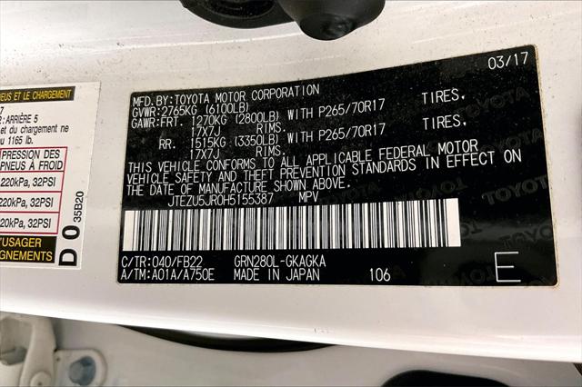 Clean CARFAX. Super White 2017 Toyota 4Runner SR5 RWD 5-Speed Automatic with Overdrive 4.0L V6 SMPI DOHC **CLEAN VEHICLE HISTORY REPORT** 4Runner SR5 4.0L V6 SMPI DOHC RWD Black w/Fabric Seat Trim 17"" x 7.0"" 6-Spoke Alloy Wheels AM/FM radio: SiriusXM Exterior Parking Camera Rear Navigation System Running Boards Security system Speed control Steering wheel mounted audio controls Traction control.Were confident we have the right price for you the right quality for you the right...