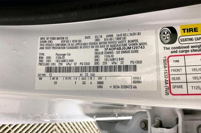CARFAX One-Owner. Clean CARFAX. Oxford White 2018 Ford Fiesta SE FWD 6-Speed Automatic 1.6L I4 Ti-VCT **CLEAN VEHICLE HISTORY REPORT** **ONE OWNER** **LOCAL TRADE IN** Fiesta SE 4D Sedan 1.6L I4 Ti-VCT FWD Exterior Parking Camera Rear Fully automatic headlights Radio: AM/FM Stereo/CD Player/MP3 Capable Security system Speed control Variably intermittent wipers Wheels: 15"" Sparkle Silver Painted Aluminum.Were confident we have the right price for you the right quality for you the...