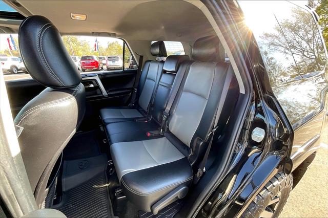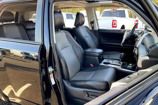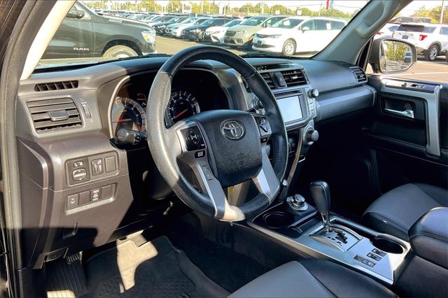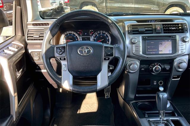 Clean CARFAX. Certified. Midnight Black Metallic 2018 Toyota 4Runner SR5 Premium 4WD 5-Speed Automatic with Overdrive 4.0L V6 SMPI DOHC **Clean Vehicle History Report** **Local Trade In** 4WD 17"" x 7.0"" 6-Spoke Alloy Wheels 3.727 Axle Ratio 4-Wheel Disc Brakes 8 Speakers ABS brakes Air Conditioning Alloy wheels AM/FM radio: SiriusXM Anti-whiplash front head restraints Auto-Dimming Rear-View Mirror Auto-dimming Rear-View mirror Body Color Heated Mirrors Brake assist Bumpers: body-color CD player Compass Driver door bin Driver vanity mirror Dual front impact airbags Dual front side impact airbags Electronic Stability Control Emergency communication system: Safety Connect Exterior Parking Camera Rear Front anti-roll bar Front Bucket Seats Front Center Armrest Front fog lights Front reading lights Front wheel independent suspension Garage Door Opener Garage door transmitter: HomeLink Heated door mirrors Heated Front Bucket Seats Heated front seats Illuminated entry Knee airbag Leather Shift Knob Leather steering wheel Low tire pressure warning Occupant sensing airbag Outside temperature display Overhead airbag Overhead console Panic alarm Passenger door bin Passenger vanity mirror Power door mirrors Power driver seat Power passenger seat Power steering Power windows Radio: Entune Premium Audio w/Navigation Rear anti-roll bar Rear seat center armrest Rear window defroster Rear window wiper Remote keyless entry Roof rack: rails only Security system Softex Synthetic Leather Seat Trim Speed control Speed-sensing steering Split folding rear seat Spoiler Steering wheel mounted audio controls Tachometer Telescoping steering wheel Tilt steering wheel Traction control Trip computer Turn signal indicator mirrors Variably intermittent wipers.Recent Arrival!Certification Program Details: ENGINE: All internally lubricated parts. Engine block head(s) and intake/exhaust manifolds if damaged as a result of the mechanical failure of an internally lubricated part. Fuel pump and water pump. Fluids seals/gaskets only when required with the replacement of a covered component(s)/part(s). TRANSMISSION/TRANSFER CASE: All internally lubricated parts. Gear cases and housings if damaged as the result of the mechanical failure of an internally lubricated part. Torque converter vacuum modulator valve. Fluids seals/gaskets only when required with the replacement of a covered component(s)/part(s). DRIVE AXLE: All internally lubricated parts. Gear cases and housings if damaged as the result of the mechanical failure of an internally lubricated part. Axle shafts and bearings C.V. and universal joints propeller shafts. Fluids seals/gaskets only when required with the replacement of a covered component(s)/parts(s). PLUS...24-HOUR EMERGENCY ROADSIDE SERVICE Provides towing assistance; dead battery service; flat tire assistance; fuel oil and water delivery service; and lockout service expenses up to $50 per occurrence for 12 months from the vehicle sale date. Awards: * 2018 KBB.com Best Resale Value Awards * 2018 KBB.com 10 Most Awarded BrandsWere confident we have the right price for you the right quality for you the right level of trust for you and the proper respect for how you want to purchase an automobile. We pride ourselves on the best and fastest way to get all the information you need to make well-informed decisions all in 30 minutes or less. Express Buying is Fast Simple Friendly and Fair. It all adds up to the right car buying experience for you. Youll simply love the way we do business. Need specific reasons to start here? Have a look at the list below: Upfront prices. Zero hassles. Homer Skelton Chrysler Dodge Jeep Ram makes it easy to find the right car for you at a price you can trust. Your car's no-haggle price is the same online as it is on the lot and we will validate our pricing 100% of the time. We also offer very flexible financing options. All