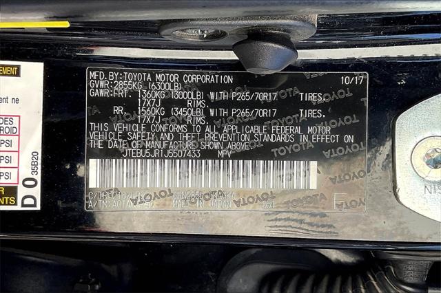 Clean CARFAX. Certified. Midnight Black Metallic 2018 Toyota 4Runner SR5 Premium 4WD 5-Speed Automatic with Overdrive 4.0L V6 SMPI DOHC **Clean Vehicle History Report** **Local Trade In** 4WD 17"" x 7.0"" 6-Spoke Alloy Wheels 3.727 Axle Ratio 4-Wheel Disc Brakes 8 Speakers ABS brakes Air Conditioning Alloy wheels AM/FM radio: SiriusXM Anti-whiplash front head restraints Auto-Dimming Rear-View Mirror Auto-dimming Rear-View mirror Body Color Heated Mirrors Brake assist Bumpers:...