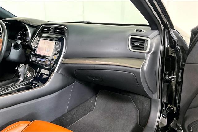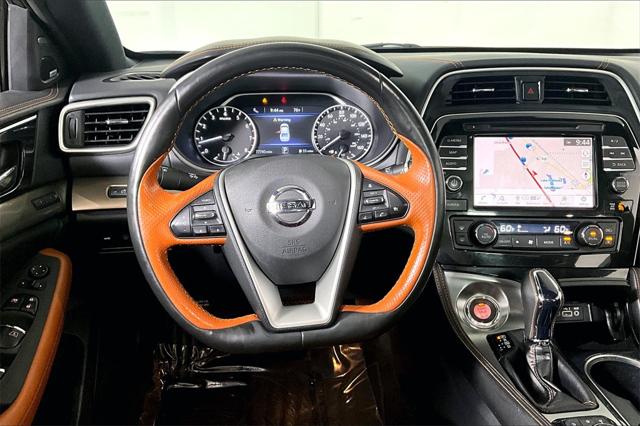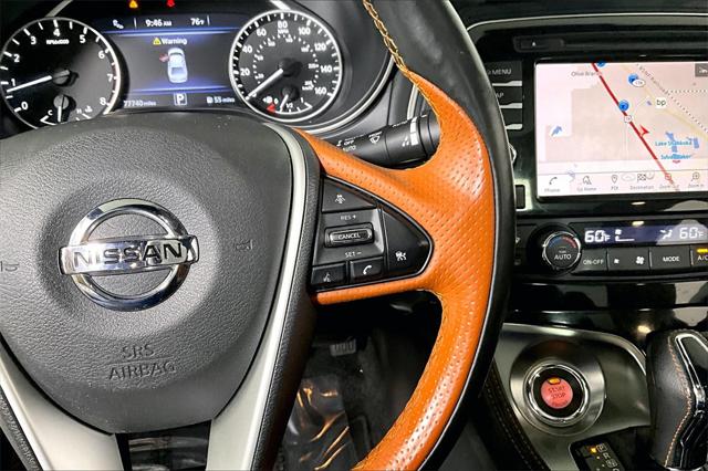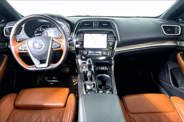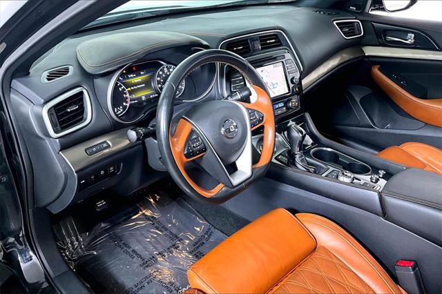Clean CARFAX. Super Black 2019 Nissan Maxima Platinum FWD CVT with Xtronic 3.5L V6 DOHC 24V **CLEAN VEHICLE HISTORY REPORT** Blind Spot Warning Brake assist CD player Charcoal Headliner & Pillars Contrast Rakuda Tan Insert on Steering Wheel Emergency communication system: NissanConnect Services Heated Rear Seat Navigation System Power moonroof Radio: AM/FM/CD Audio System w/Navigation Rakuda Tan Semi-Aniline Leather-Appointed Seats Reserve Package Satin Bronze Interior Faceted...