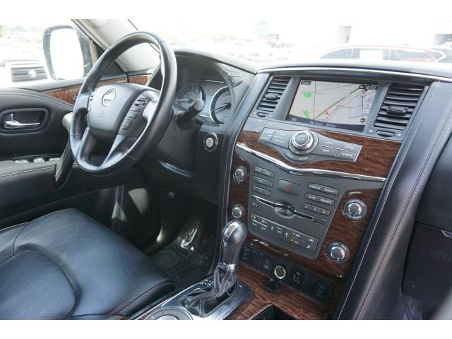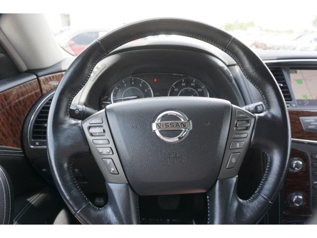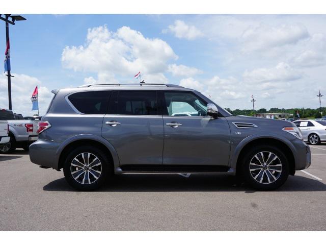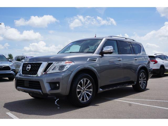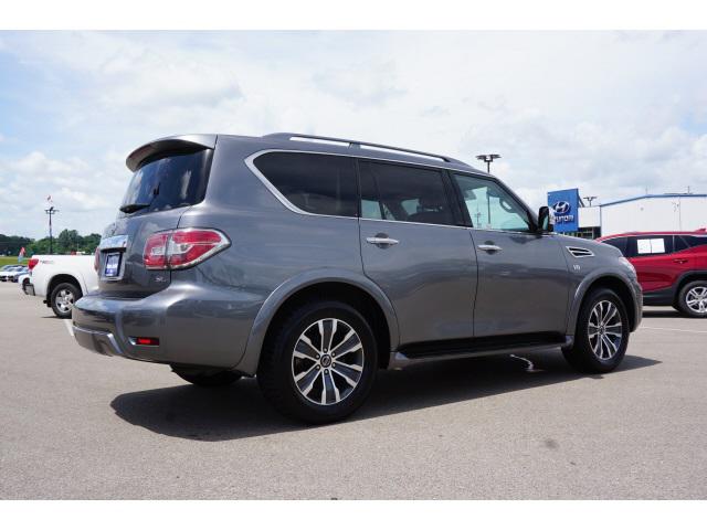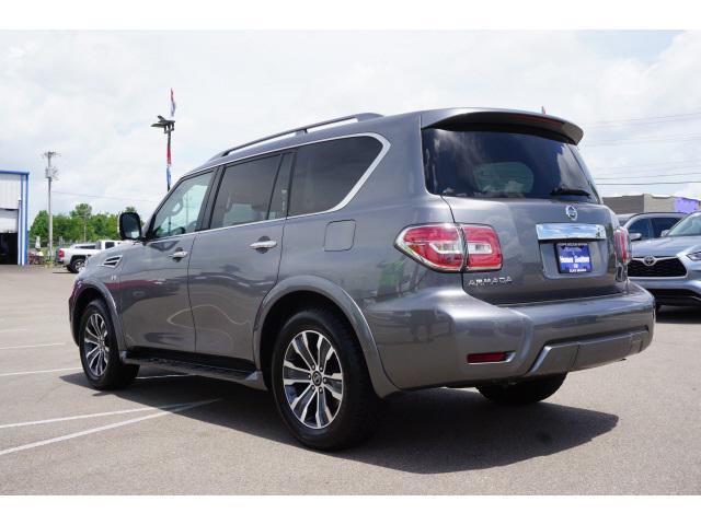 CARFAX One-Owner. Clean CARFAX. Gun Metallic 2020 Nissan Armada SL RWD 7-Speed Automatic 5.6L V8We are a full-service top-rated Hyundai dealership located in Olive Branch MS. Homer Skelton Hyundai is committed to meeting your automotive needs with speed flexibility and friendly customer service.Premium Package (Power Sliding Moonroof w/Front Tilt & Rear Slide Blind Spot Warning Intelligent Back-Up Intervention (I-BI) Intelligent Distance Control (I-DC) and Rear Cross Traffic Alert (RCTA)) 20"" Painted Alloy Wheels Front dual zone A/C Navigation System 13 Speakers 3rd Row Carpeted Floor Mats - Bench Seat 3rd row seats: split-bench 4-Wheel Disc Brakes ABS brakes Air Conditioning Alloy wheels AM/FM radio: SiriusXM Anti-whiplash front head restraints Auto tilt-away steering wheel Auto-dimming door mirrors Auto-dimming Rear-View mirror Auto-leveling suspension Automatic temperature control Axle Ratio: 2.94 Brake assist Bumpers: body-color CD player Delay-off headlights Driver door bin Driver vanity mirror Dual front impact airbags Dual front side impact airbags DVD-Audio Electronic Stability Control Emergency communication system: NissanConnect Services Four wheel independent suspension Front anti-roll bar Front Bucket Seats Front Center Armrest Front fog lights Front reading lights Fully automatic headlights Garage door transmitter: HomeLink Heated door mirrors Heated Front Bucket Seats w/Power Driver's Memory Heated front seats Illuminated entry Leather Shift Knob Leather-Appointed Seat Trim Low tire pressure warning Memory seat Occupant sensing airbag Outside temperature display Overhead airbag Overhead console Panic alarm Passenger door bin Passenger vanity mirror Power door mirrors Power driver seat Power Liftgate Power passenger seat Power steering Power windows Radio data system Radio: AM/FM/SXM/CD/MP3/HD Rain sensing wipers Rear air conditioning Rear anti-roll bar Rear reading lights Rear seat center armrest Rear window defroster Rear window wiper Reclining 3rd row seat Remote keyless entry Roof rack: rails only Security system Speed control Speed-sensing steering Speed-Sensitive Wipers Split folding rear seat Spoiler Steering wheel memory Steering wheel mounted audio controls Tachometer Telescoping steering wheel Tilt steering wheel Traction control Trip computer Turn signal indicator mirrors Variably intermittent wipers and Voltmeter.