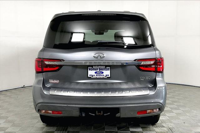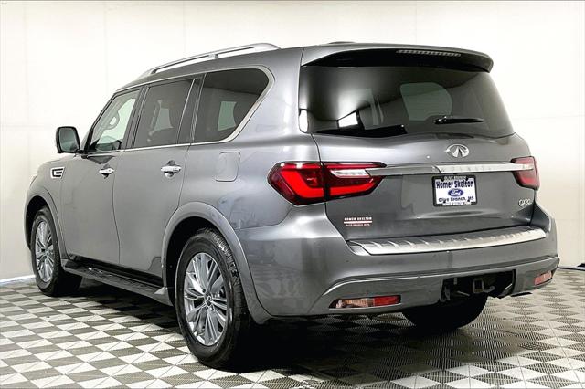 CARFAX One-Owner. Clean CARFAX. Graphite Shadow 2021 INFINITI QX80 LUXE RWD 7-Speed Automatic 5.6L V8 **CLEAN VEHICLE HISTORY REPORT** **ONE OWNER** QX80 LUXE 5.6L V8 RWD Apple CarPlay/Android Auto Fully automatic headlights Heated front seats Leather-Appointed Seats Navigation system: INFINITI InTouch Navigation Power Liftgate Power moonroof Radio: Bose Audio System w/13 Speakers Security system Wheels: 20"" x 8.0"" Aluminum-Alloy.Were confident we have the right price for you the right quality for you the right level of trust for you and the proper respect for how you want to purchase an automobile. We pride ourselves on the best and fastest way to get all the information you need to make well-informed decisions all in 30 minutes or less. Express Buying is Fast Simple Friendly and Fair. It all adds up to the right car buying experience for you. Youll simply love the way we do business. Need specific reasons to start here? Have a look at the list below: Upfront prices. Zero hassles. Homer Skelton Ford makes it easy to find the right car for you at a price you can trust. Your car's no-haggle price is the same online as it is on the lot and we will validate our pricing 100% of the time. We also offer very flexible financing options. We stand behind our cars. All of our used cars are Quality Certified and come with a free vehicle history and safety recall report 72-Hour Money-Back Guarantee and 30-Day Limited Warranty. Certain vehicles may have unrepaired safety recalls. We'll buy your car even if you don't buy ours. Our fast free appraisal process along with our partnership with Kelly Blue Books Trade-In Buying Center ensures the most money for your Trade-In. KBB will write you a check for your automobile or we will! Either cash offer is good for seven days. And we'll buy any car no matter its age or condition. Odometer is 3878 miles below market average!
