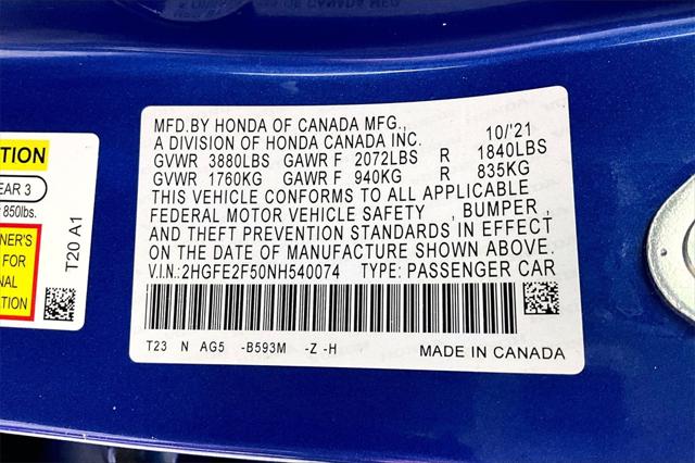 CARFAX One-Owner. Clean CARFAX. Boost Blue Pearl 2022 Honda Civic Sport FWD CVT 2.0L I4 DOHC 16V i-VTEC **CLEAN VEHICLE HISTORY REPORT** **ONE OWNER** Black w/Cloth Seat Trim Wheels: 18"" Gloss Black Alloy.Were confident we have the right price for you the right quality for you the right level of trust for you and the proper respect for how you want to purchase an automobile. We pride ourselves on the best and fastest way to get all the information you need to make well-informed decisions all in 30 minutes or less. Express Buying is Fast Simple Friendly and Fair. It all adds up to the right car buying experience for you. Youll simply love the way we do business. Need specific reasons to start here? Have a look at the list below: Upfront prices. Zero hassles. Homer Skelton Ford makes it easy to find the right car for you at a price you can trust. Your car's no-haggle price is the same online as it is on the lot and we will validate our pricing 100% of the time. We also offer very flexible financing options. We stand behind our cars. All of our used cars are Quality Certified and come with a free vehicle history and safety recall report 72-Hour Money-Back Guarantee and 30-Day Limited Warranty. Certain vehicles may have unrepaired safety recalls. We'll buy your car even if you don't buy ours. Our fast free appraisal process along with our partnership with Kelly Blue Books Trade-In Buying Center ensures the most money for your Trade-In. KBB will write you a check for your automobile or we will! Either cash offer is good for seven days. And we'll buy any car no matter its age or condition. Odometer is 3123 miles below market average! 30/37 City/Highway MPG